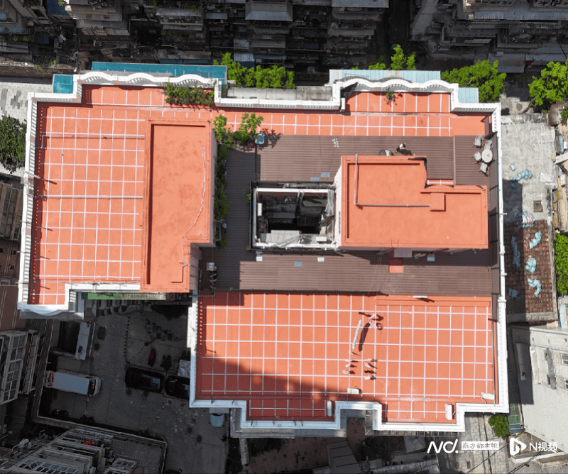 曾经,广州秉政街6号楼等居民楼天台普遍存在杂物乱堆、野草丛生、乱搭乱建、防水层老化。